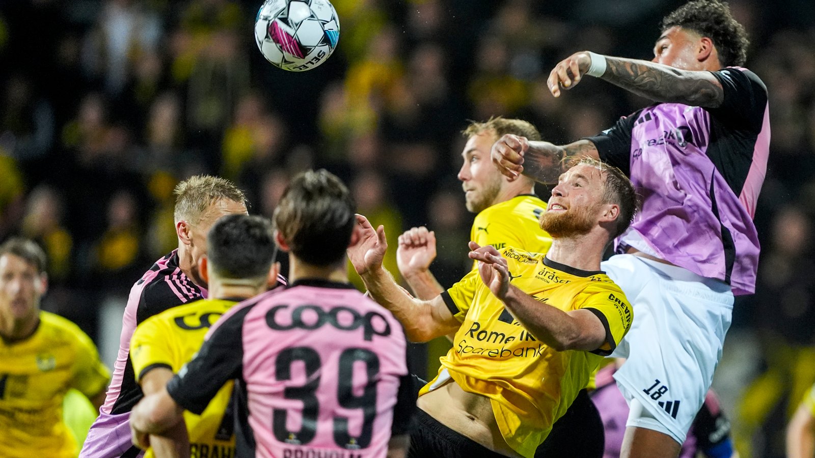 Rosenborg ønsket å få ballen ned på bakken og gjorde det mer og mer utover i førsteomgang. På en dødballsituasjon etter 40 minutter fikk Marius Broholm ballen utenfor 16-meteren og spilte Pereira flott gjennom på høyresiden. Backen slo hardt inn foran mål hvor Noah Holm på frekkeste vis hælsparket ballen i mål! 1-1 til pause!
