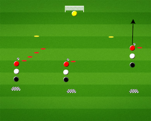 Samme spiller får deretter en pasning fra spiller i midten, legger igjen og spiller to må skyte på én berøring