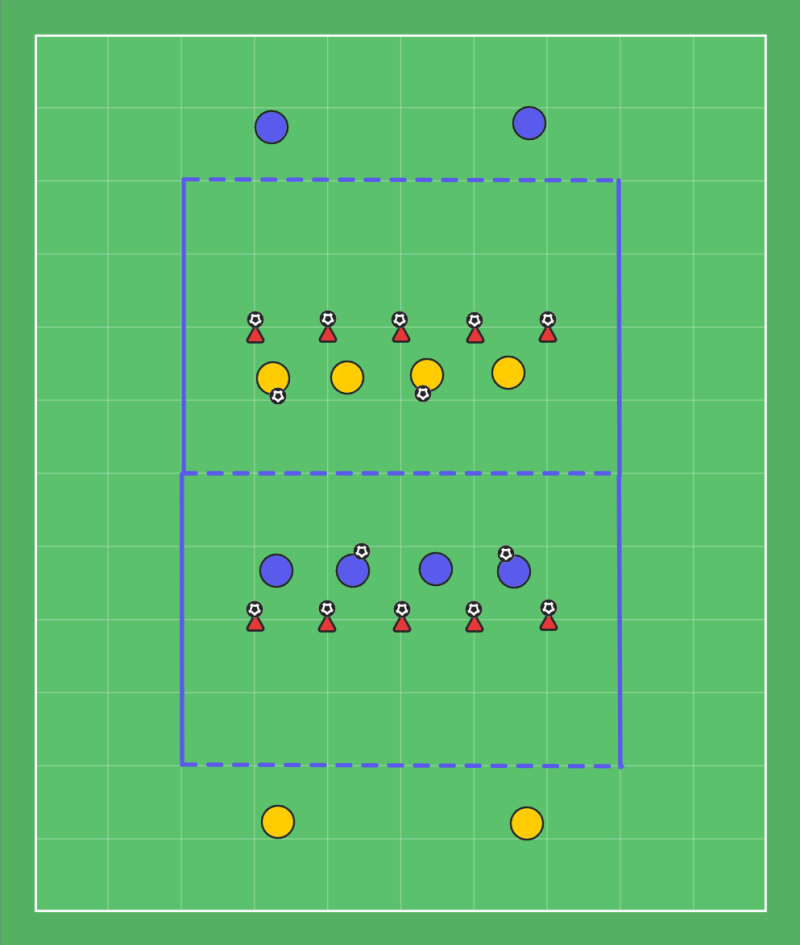 X antall spillere i firkanten, x antall bak motstanderens firkant